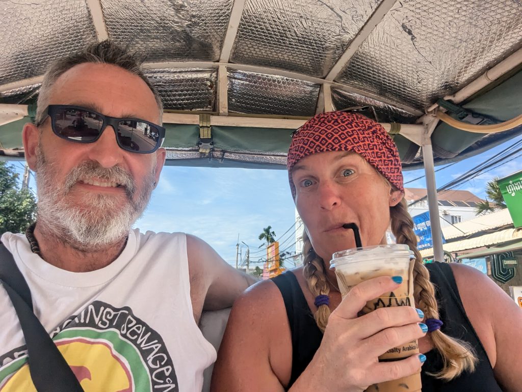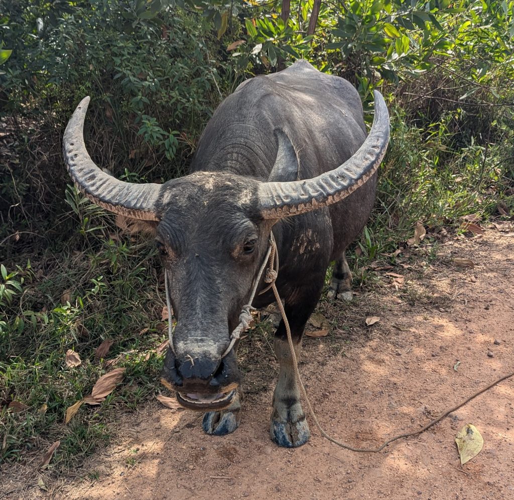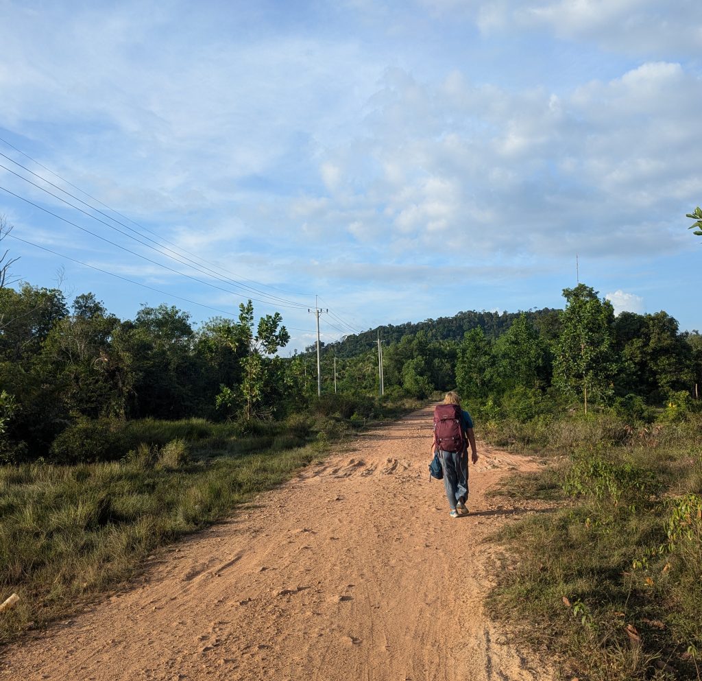 After a final breakfast we bid everyone goodbye and our pack of dogs escorted us to the edge of the lonely beach territory at which point Em remembered she had left her phone charging at the bar so ended up getting some extra steps into her day. Me and the dogs guarded the bags from pirates and highway men. One of the Cambodian waiters had arranged for his Tuk Tuk friend to pick us up at steep hill 2 passed plank bridge (the point at which Tuk Tuks can go no further) and after a 20 minute walk through sweaty jungle we passed the water buffalo and reached steep hill 2 just beyond plank bridge where our Tuk Tuk was waiting for us.