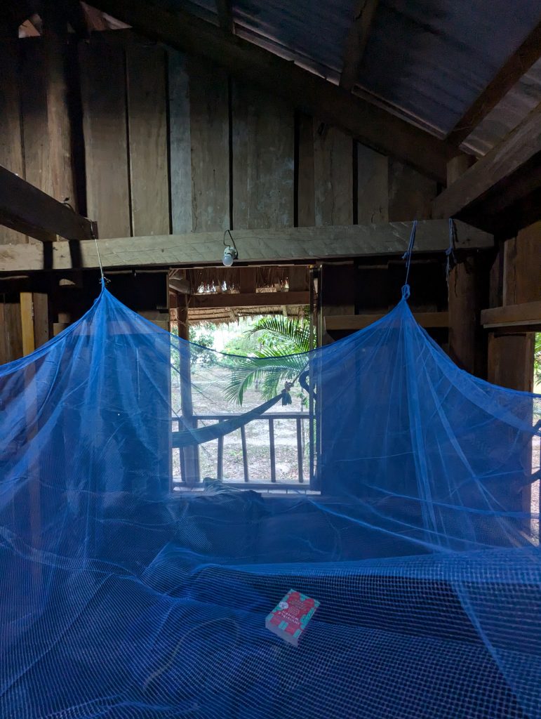 Eventually we headed back to our hut, the spider had gone, whether he left of his own Accord or on someone’s face we will never know. There was a cooling breeze that slid through the open shutters and swayed the parma violet mosquito net like a visual lullaby as we drifted off into dreamworld.
