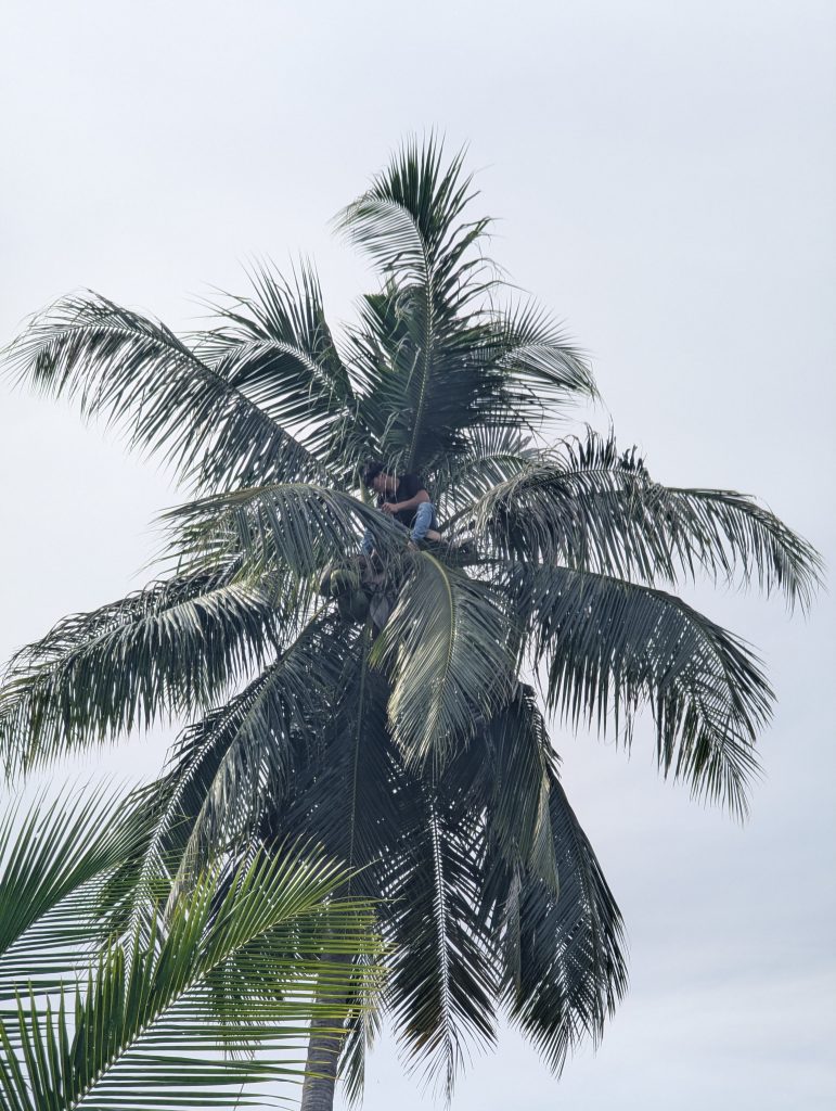 After last night’s wine and cocktails it was definitely a two coffee morning so we headed to HQ and Em mixed it up with a hot coffee followed by an iced. We ate breakfast, omelette for Em (protein required after her Robinson Crusoe beach gym workout yesterday) and Cocco Mango Sticky rice for me (like a sweet rice pudding made with coconut milk and chunks of fresh juicy mango stirred in). We then retired to the hammocks to read and watch the local boys shimmy up giant palms (bare foot, no safety ropes, machete between teeth) to harvest coconuts. They disappeared into the canopy and you would hear a chop chop before a large coconut would fall almost whistling through its descent and thud into the ground as though they were made of lead, causing a vibration you could feel in your feet. You really would not want one of them on your head whilst sunbathing under a palm tree. There’s no internet here but if there was I would now be googling how many people died a year from falling coconut.