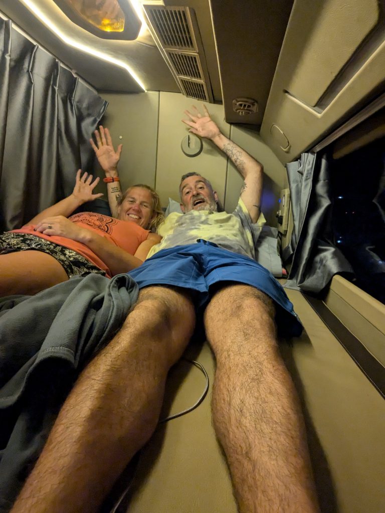 It showed up on time and we climbed into our air condition double (for midgets) bunk drew the curtains and hunkered down for the next 12 hours hoping to wake up at 5 am in Siem Reap for the next stage of the adventure. It’s all fine sharing this small space with your partner but sharing it with a random stranger would not be ok! There’s no way you could occupy this tiny space for 13 hrs without full bodily contact!