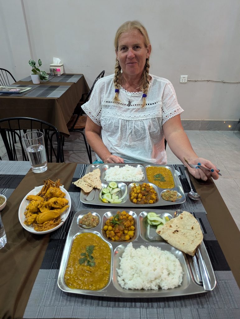 We grabbed a Tuk Tuk home (seemed less painful than walking and turning down all the curb crawlers) and once back at the Botanic Hotel we jumped in the pool to cool down before sipping ice cold beer on the roof Terrance overlooking the temple and listening to the geckos. Em found a good place to eat just round corner as the hotel kitchen was shut. It was a lovely little indian cafe with only 3 tables. We had vegtable Thali and veg pakoras all cooked fresh by the owner and his wife. $12 in total, absolute bargain of flavour bombs.