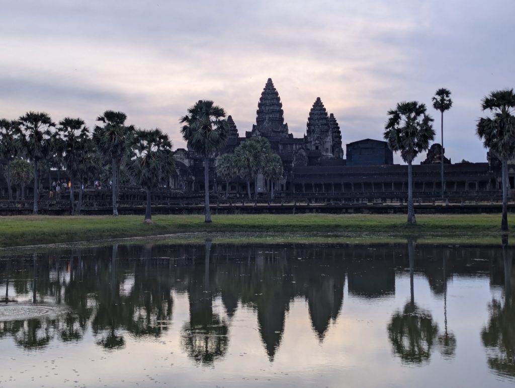 We were led by torchlight forming huge human chains like ants foraging for food. Mosquitoes were also out foraging for food and making the most of my bare legs. Our guide found us a good position and we sat to wait for the dramatic and renowned sunrise over Ankhor Wat, the first time any of us had visited a world heritage site.
