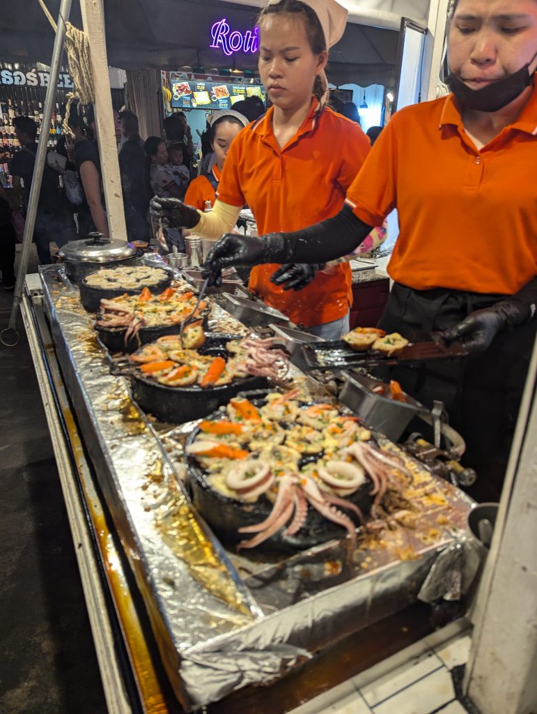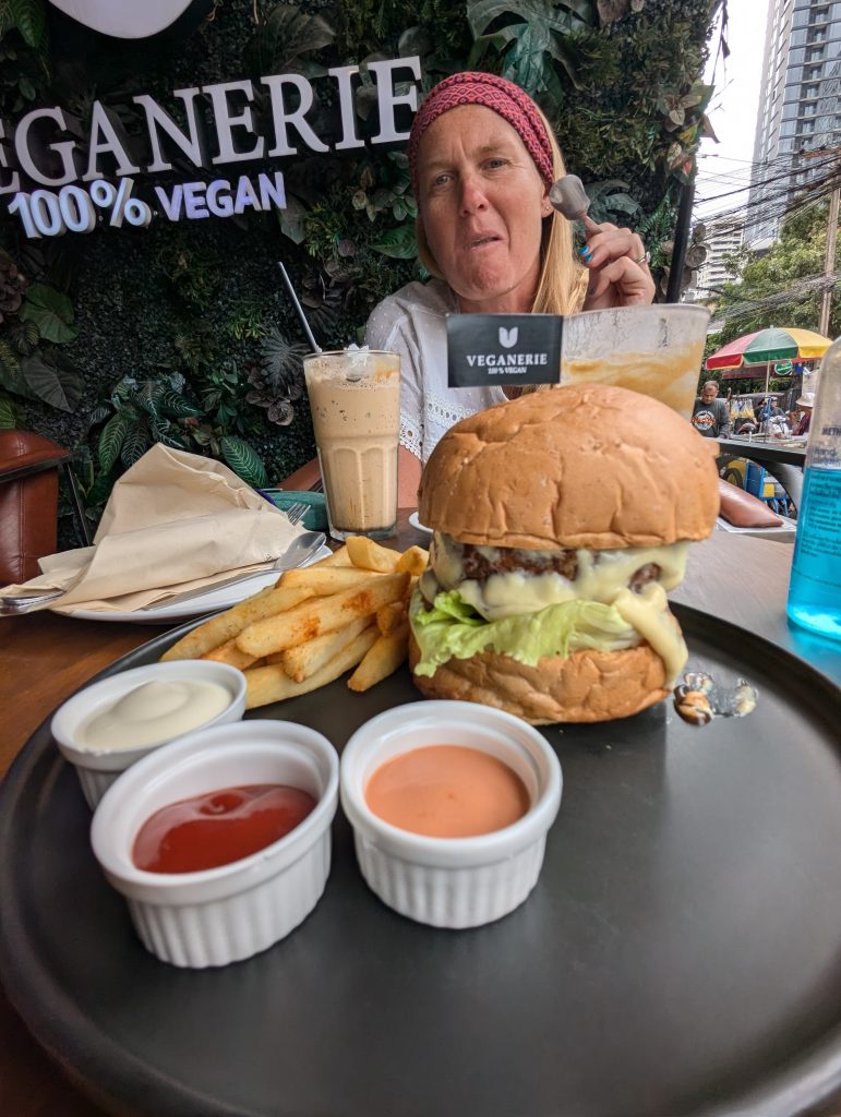 A few hundred yards away was a full vegan cafe so we enjoyed a couple of smoothies (peanut butter and jelly for me, salted caramel frappelappacino for Em) and I tried a burger which went straight into number one on my all time favourite burger (eating out) chart and Em had a cake. We then met up and caught up on the last few days before having a cooling dip in the rooftop pool and agreeing to meet in reception at 6pm to head to the famous night market.