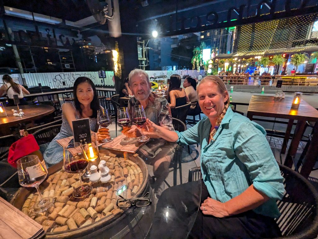 In the evening we all went out for a family dinner We grabbed a table early in an attempt to avoid the mayhem of Saturday night in Bangkok. We had a lovely meal and a good chat. Now that we had finally met and got to know each other I took the opportunity to formerly ask Ems Dad for his approval of our marriage (as dictated by tradition). He gave me the green light and we raised a glass. As the volume of the music crept up we hugged and bid each other farewell as this chapter of our adventure drew to a close. Tomorrow we were flying home.