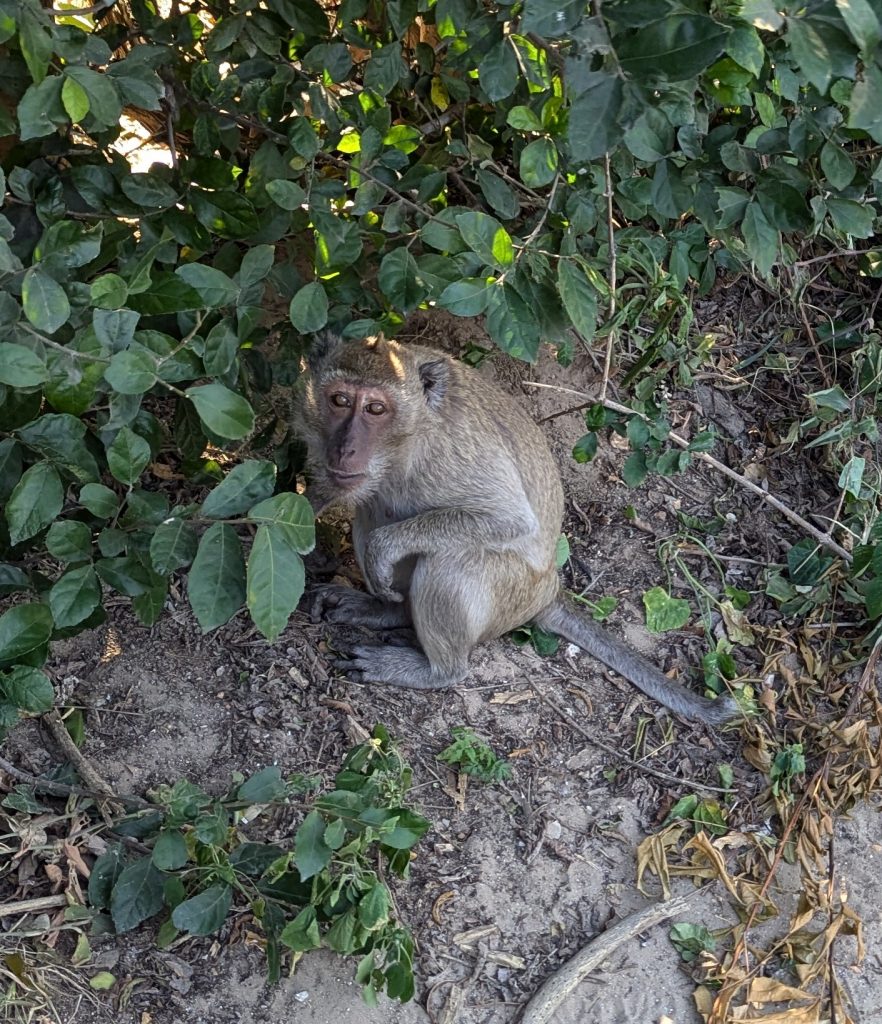 We then decided we would try and walk the 20 km home through the resort and onto the beach. Nobody else seemed to be walking but for me it was the perfect pace to absorb the place and people. Having now discovered massages they always seemed to be on my mind and after a couple of hours we slipped into a cool massage house for an hour long foot massage. As always the lady washed our feet and we apologised for the dirt and dust from the road and trail. Soon we were sat in comfy armchairs with experienced hands pawing away the aches of our tired feet. An hour flew by and then we were back on the road and we soon encountered signs that got my heart racing ‘do not feed the monkeys’ and a childhood dream of wanting to be robbed by a monkey came back to me. Now every step taken was done so scanning for monkey action. After a couple of kilometers I gave up and we cut down a side street towards the beach.