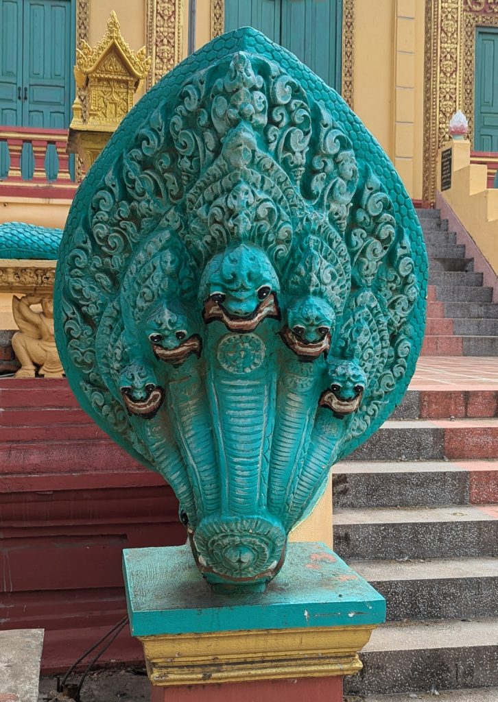 After a bit of faffing at visa control we were eventually allowed to enter Cambodia. Uniformed officers can be quite intimidating but lucky for us these ones were full of smiles. Outside the airport taxi drivers duelled for our custom but little did they know that Mr Tom and his Tuk Tuk were already on the way to collect us, sent by our accomodation (Blue indigo retreat). Emma tried another coffee and binned it after a sip and shortly later Mr Tom arrived, a chatty friendly Cambodian with a rusty Tuk Tuk. We jumped in and started our 90 minute journey to our accomodation. Thai traffic was wild but had nothing on this. Absolute chaos and craziness, mopeds and tuk Tuks everywhere. How we didn’t crash I will never know! At one point a family on a moped with two babies almost rode into us, someone also rode past with 3 air fryers strapped to his back. Bonkers. There were no glossy signs of tourism here this was real life. The duel currency (dollars and riel) takes some getting used to. We had to squeeze on a ferry to cross the Mekong (we were the only white faces on board) and bounced down the road further and further from the city, the bounces getting bigger and more frequent every kilometer. There were no shops as we know them, everything was a stall or a shack, bikes and mopeds were everywhere.